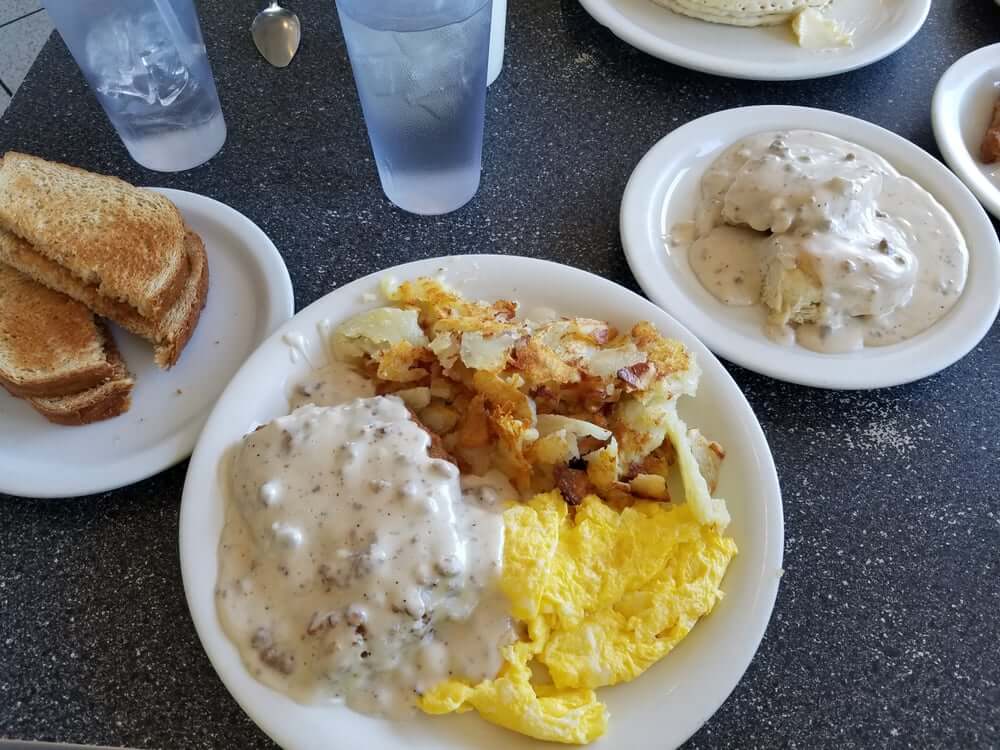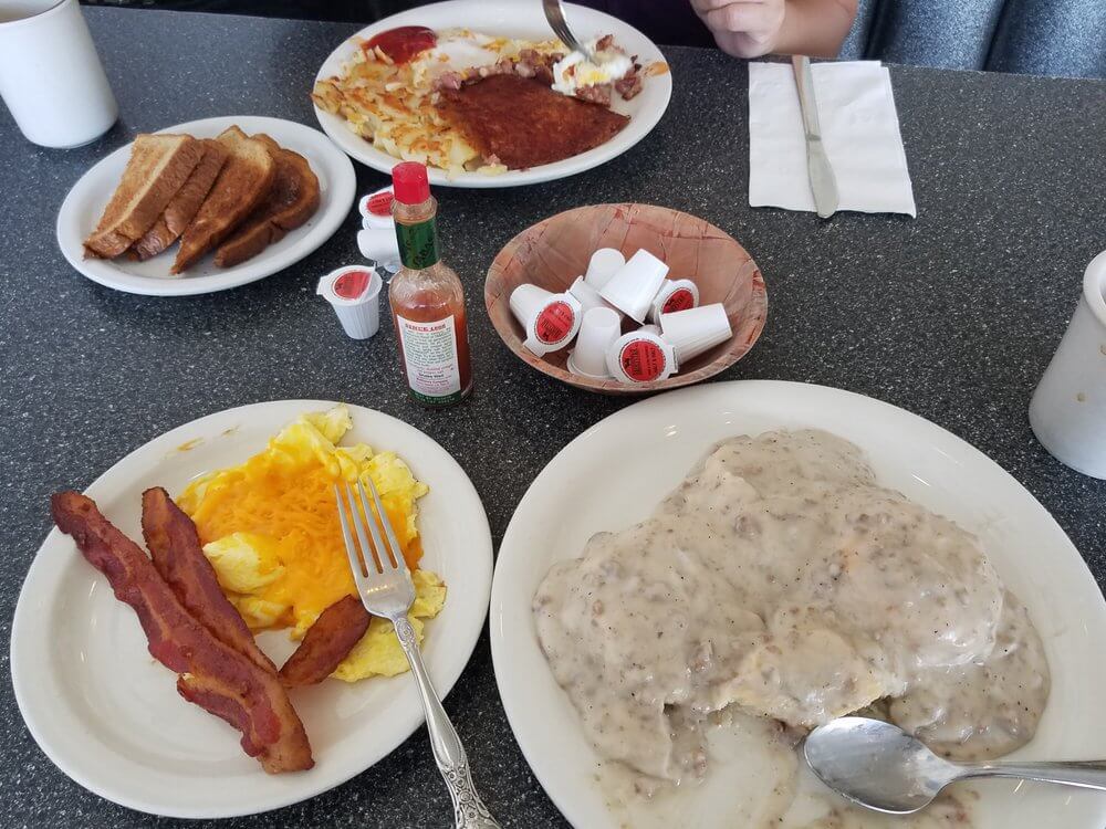 Pancakes! This is a lovely local diner with a large following of regulars who sit at the counter. Extremely friendly service. Fresh pie every day. Breakfast all day!